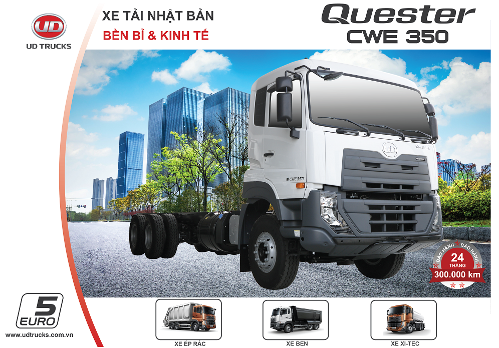 Xe chassis 6x4 UD QTrucks CWE 350 WB4300 Euro 5 là xe cabin chassis tải nặng nhập khẩu nguyên chiếc từ UD Trucks – Hãng xe tải hàng đầu Nhật Bản.