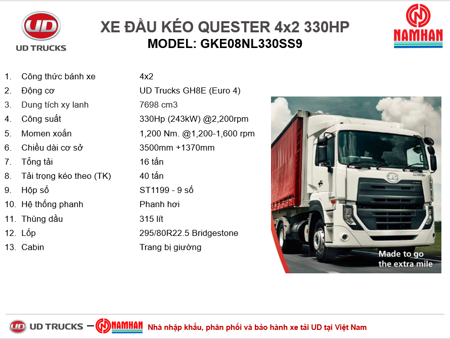 ĐẦU KÉO UD TRUCKS 4x2 GKE 330